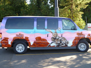 Shawn arrived today with our replacement van. It's much newer (2008) and better appointed than the old one and goes like the clappers. New tyres also. And it's got a great paint job based on the desert in Joshua National Park. Got the biggest bunny on the side lol. Drove from Myrtle Creek to Portland Oregon ...actually a bit further...this RV park is just inside Washington State. We did 206 miles in a much faster time than we would have in the old van and I'd tell you how fast we went but Larry our friendly CHPs officer might have friends in Oregon :) Hi Larry!!! Hopefully we will be able to make up some lost time now. Got to speak to Karen (Omaha City) on the phone tonight, So nice to hear her voice after so many years of just internet contact lol. It was great!! Seattle is about 150 miles away so with an early start we will be there mid morning. Portland looks amazing but we don't have time to stay - will try to get back here in the last month after Lee has gone back.